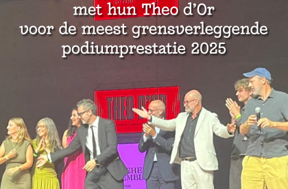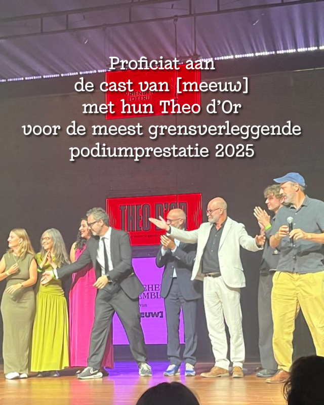 Since last year, all acting awards presented at the ‘Oscars’ for Dutch theatre have been called Theo d’Ors. They are awarded for best leading role, best supporting role and most groundbreaking performance. The Theo d’Or for the most groundbreaking theatre performance went to the entire ensemble of [meeuw], a show produced by Toneelhuis, Olympique Dramatique and theater arsenaal with a cast of both deaf and hearing actors. They perform the show together almost entirely in Flemish Sign Language.